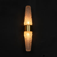 Spiked double glass cones in the ancient Rostrato style sparkle in a modern cummerbund of bold brushed brass with machined details.