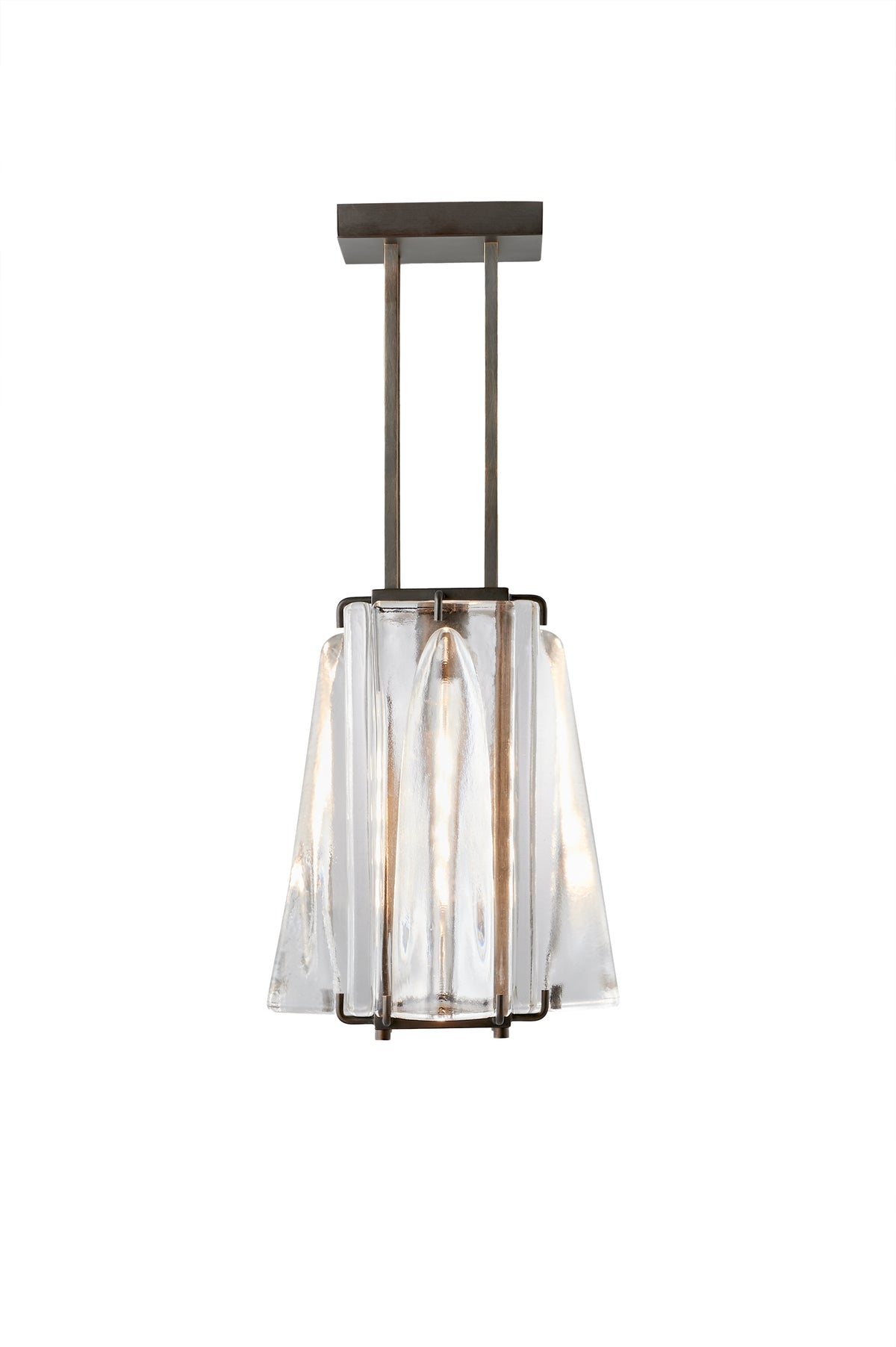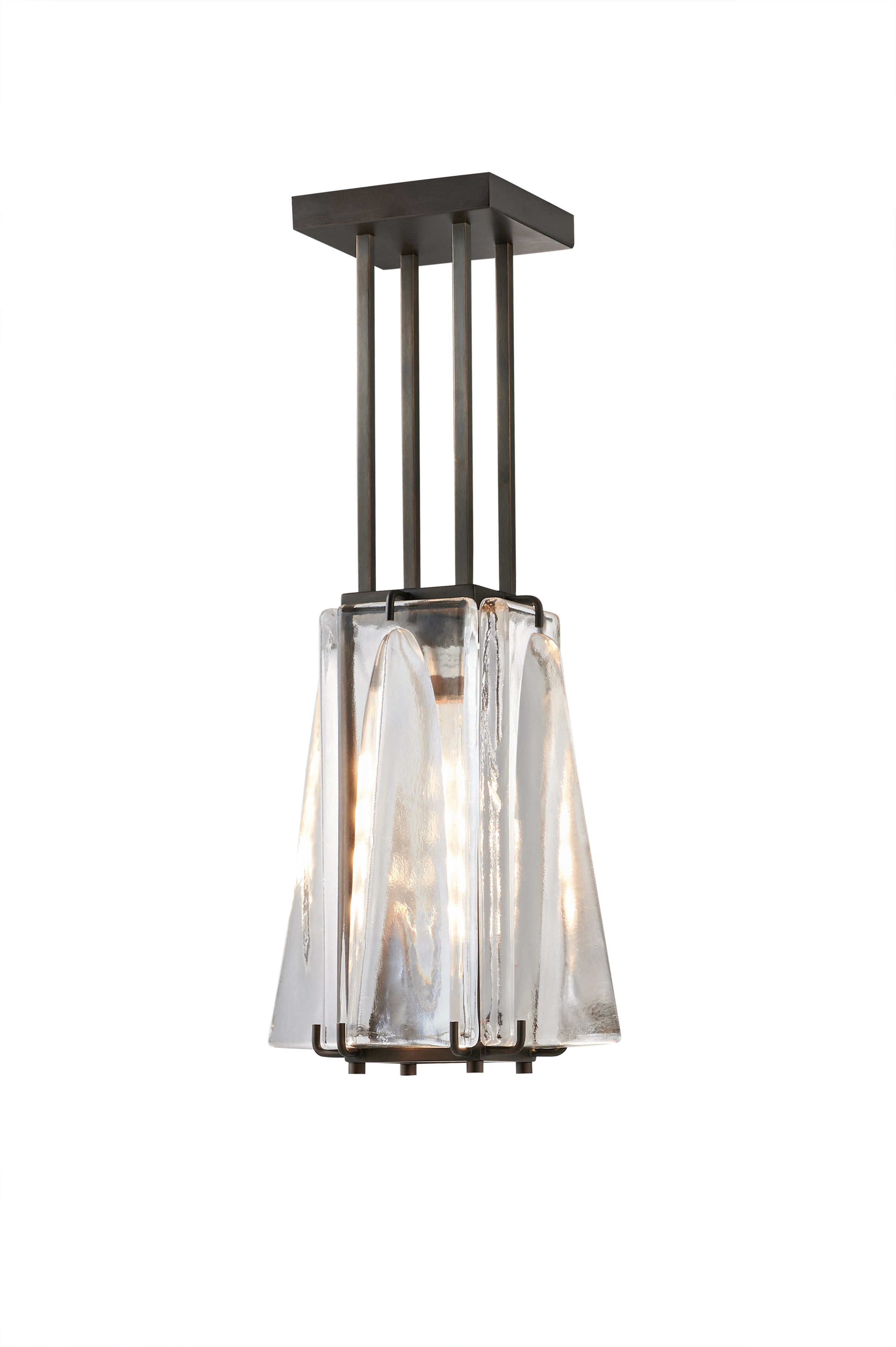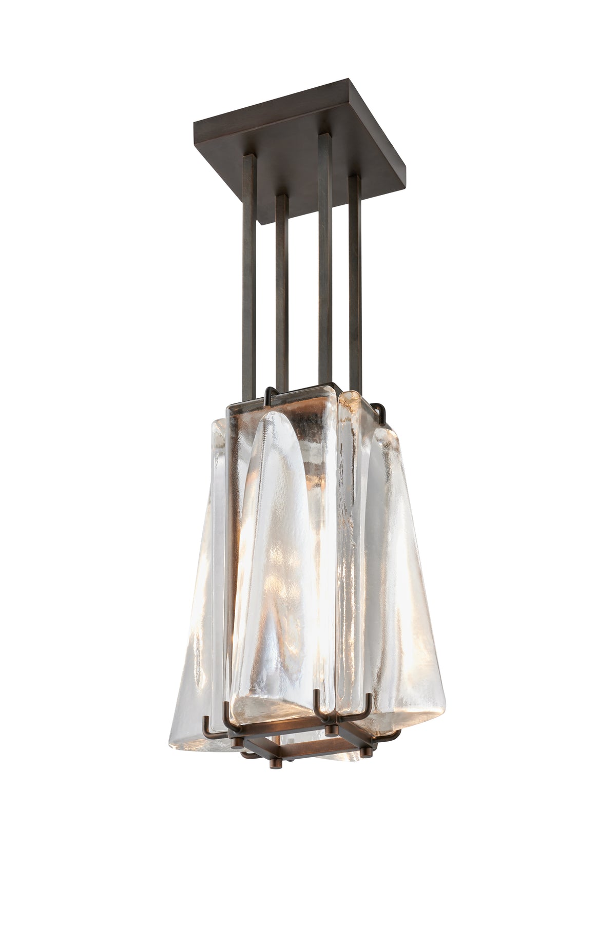 A quartet of elegant sand cast glass blocks in a solid oil rubbed bronze frame.